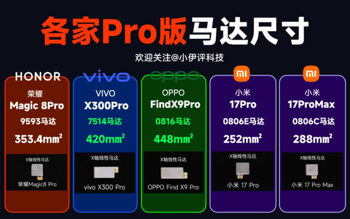 再比如马达,别说vivo和oppo了,就连曾经被小米点名嘲讽的荣耀家的荣耀Magic 8Pro的马达都比小米17ProMax的大,这你敢信么?